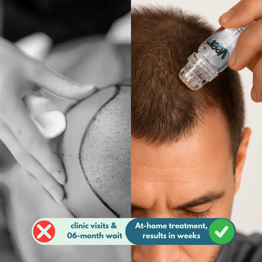 Clinical studies show that within just 1–7 days, you may notice reduced hair shedding and a healthier, energized scalp all without the side effects, bleeding, or downtime of hair transplant procedures.